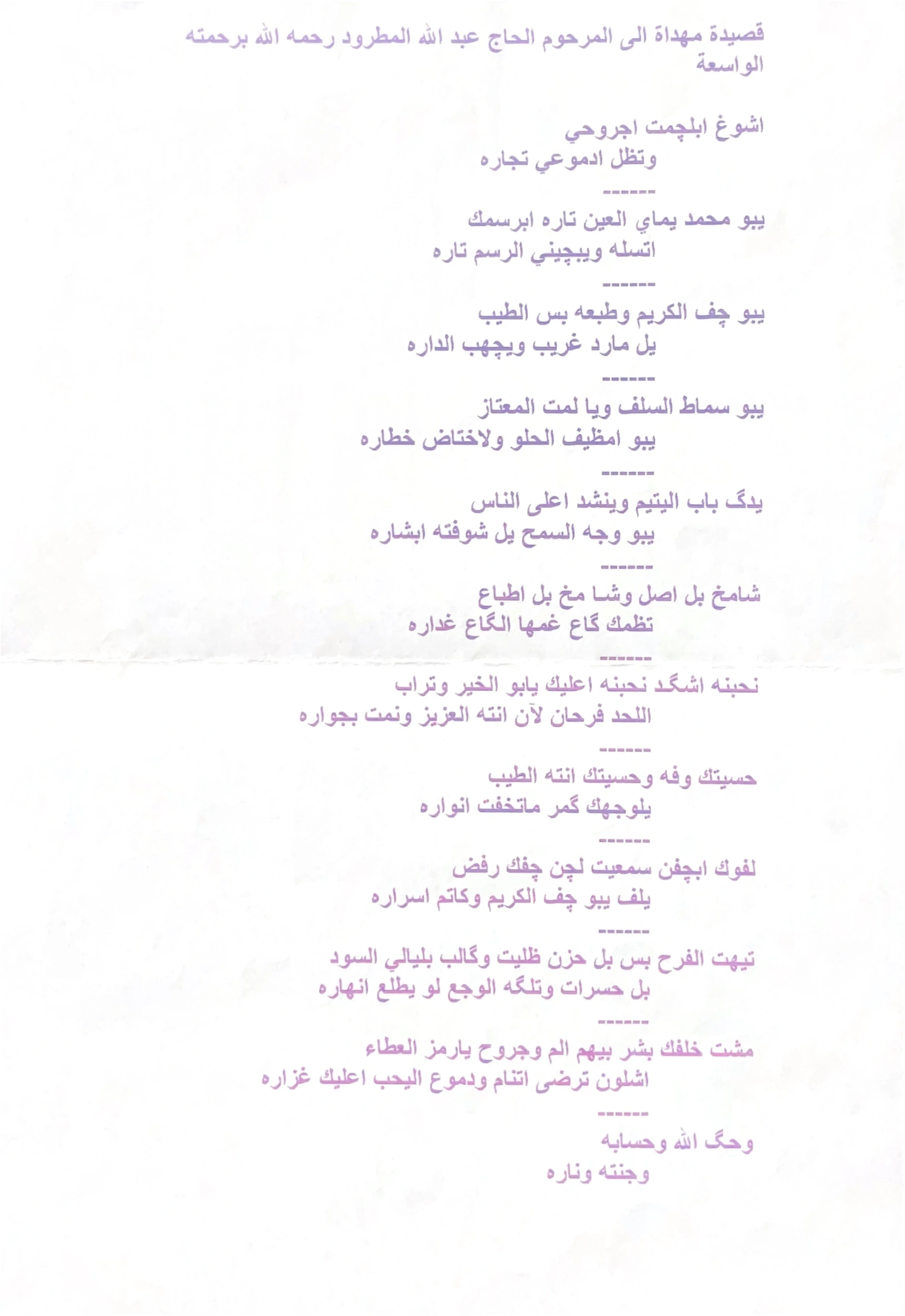 قصيدة مهداة الى المرحوم الحاج عبد الله المطرود رحمه الله برحمته الواسعة