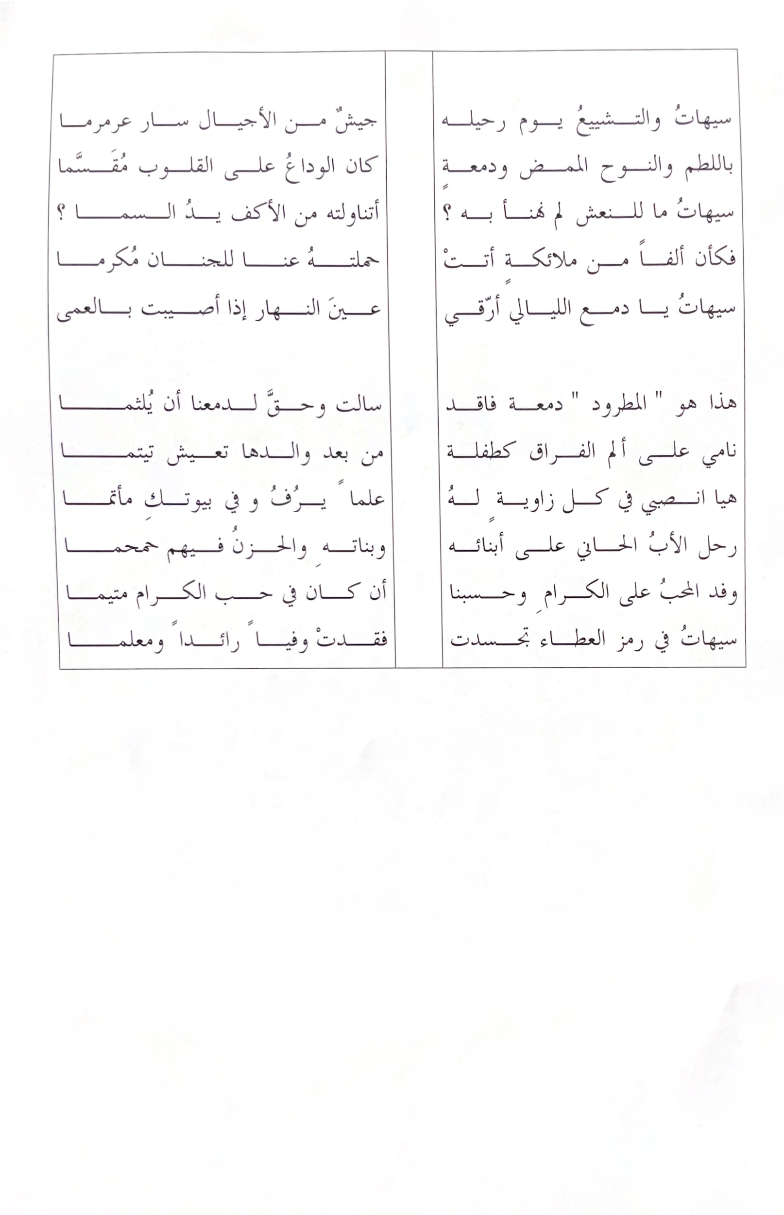هذا هو ” المطرود ” دمعة فاقد … سالت وحقَّ لدمعنا أن يُلثما