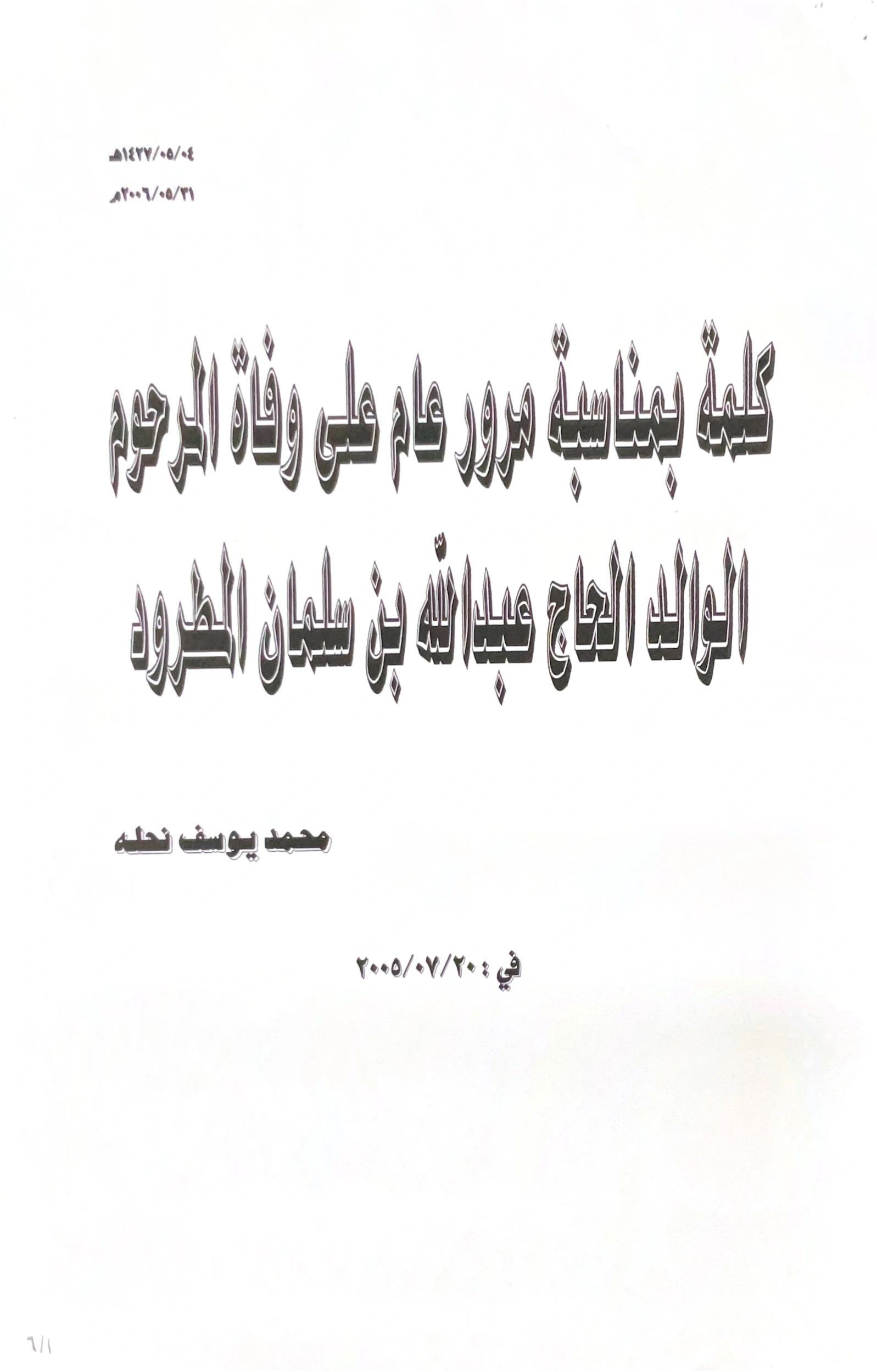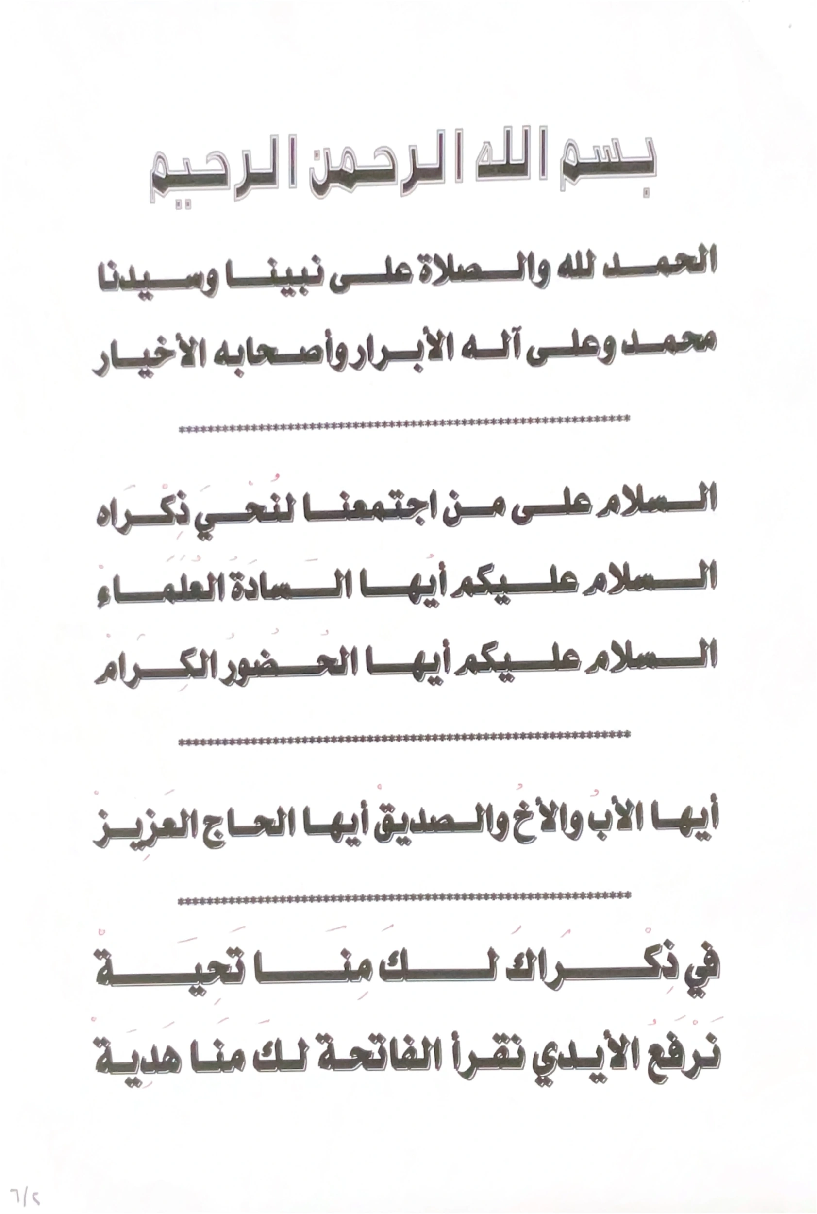 كـلمة بمناسبة مرور عام على وفاة الحاج