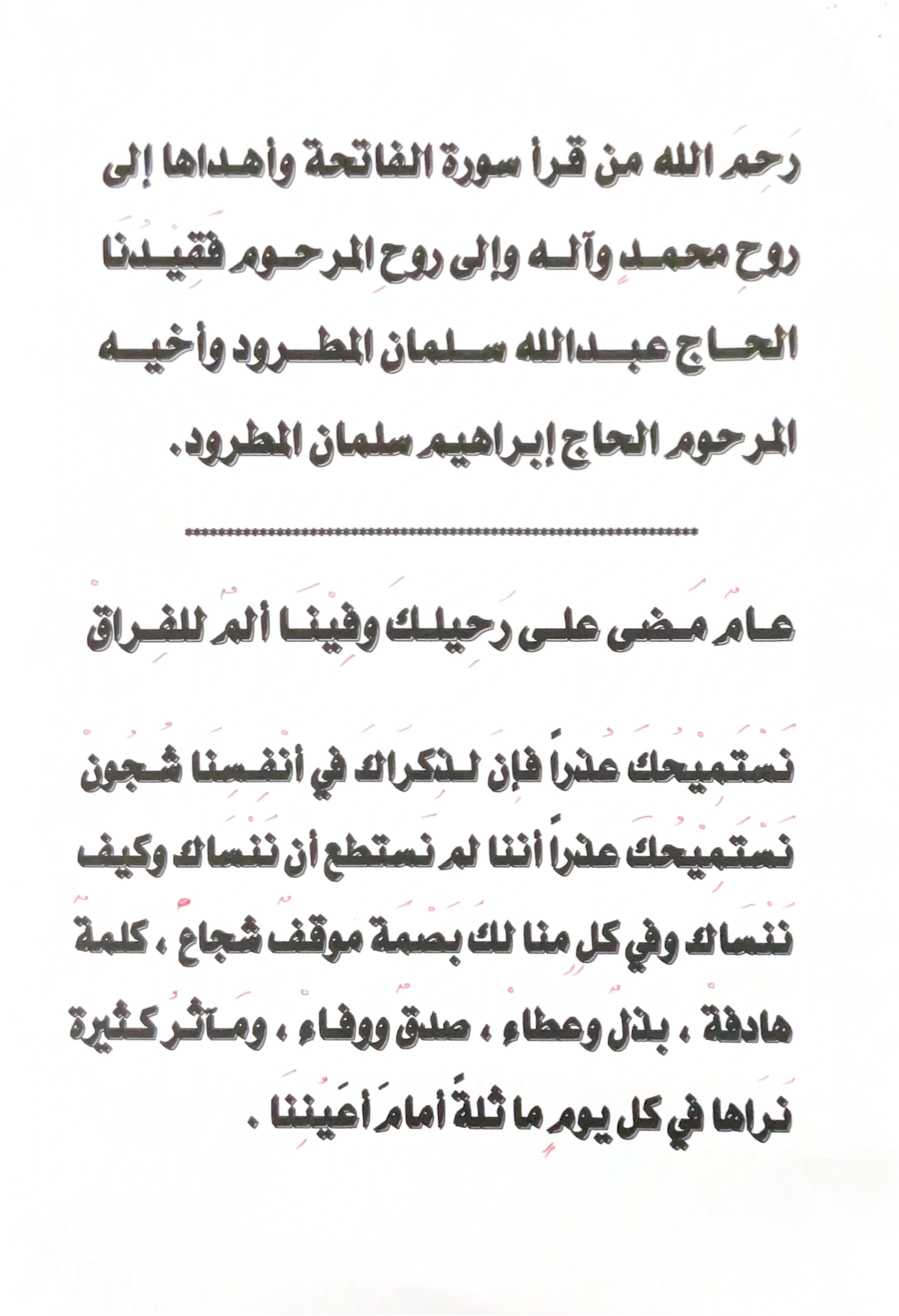 المرحوم الحاج إبراهيم سلمان المطرود.