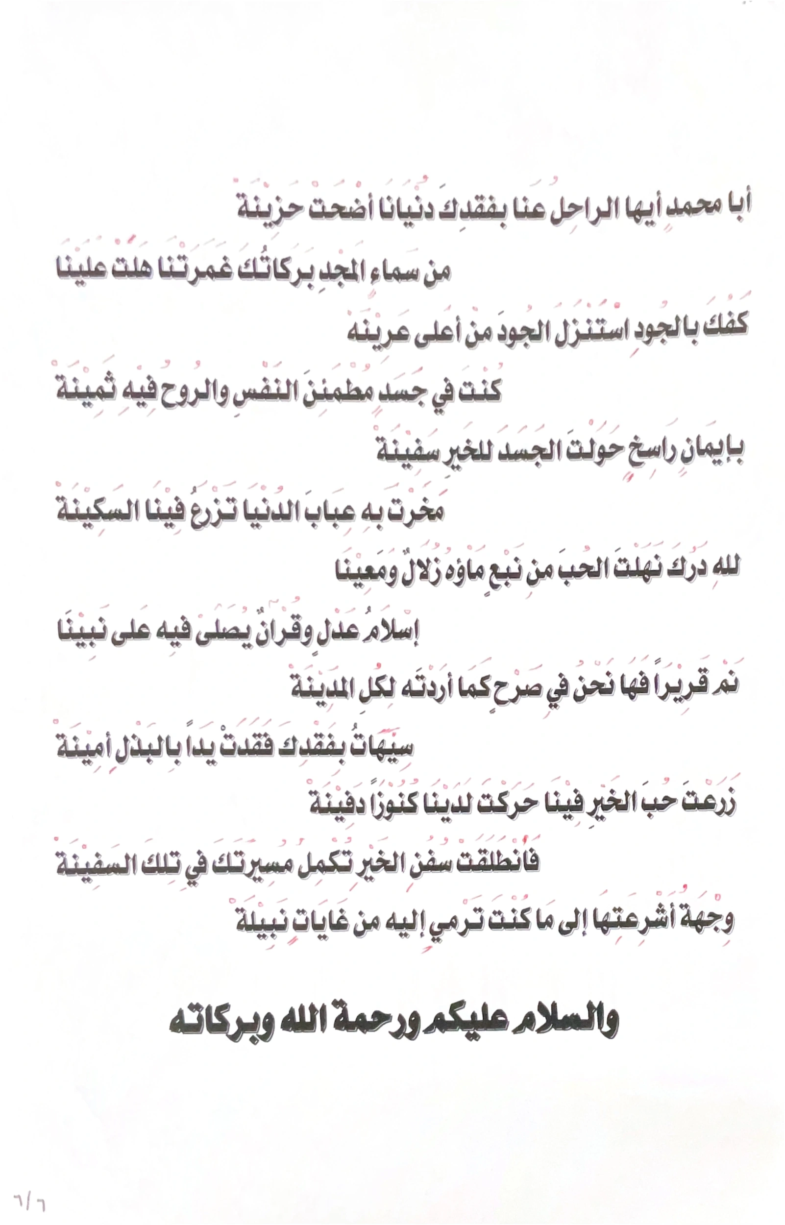 روح محمد وآله وإلى روح المرحوم فقيدنا