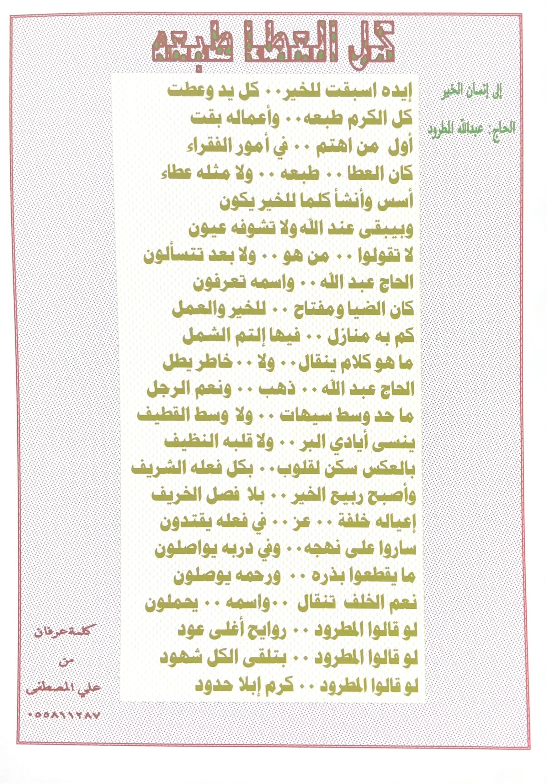 إلى إنسان الخير الحاج عبدالله المطرود