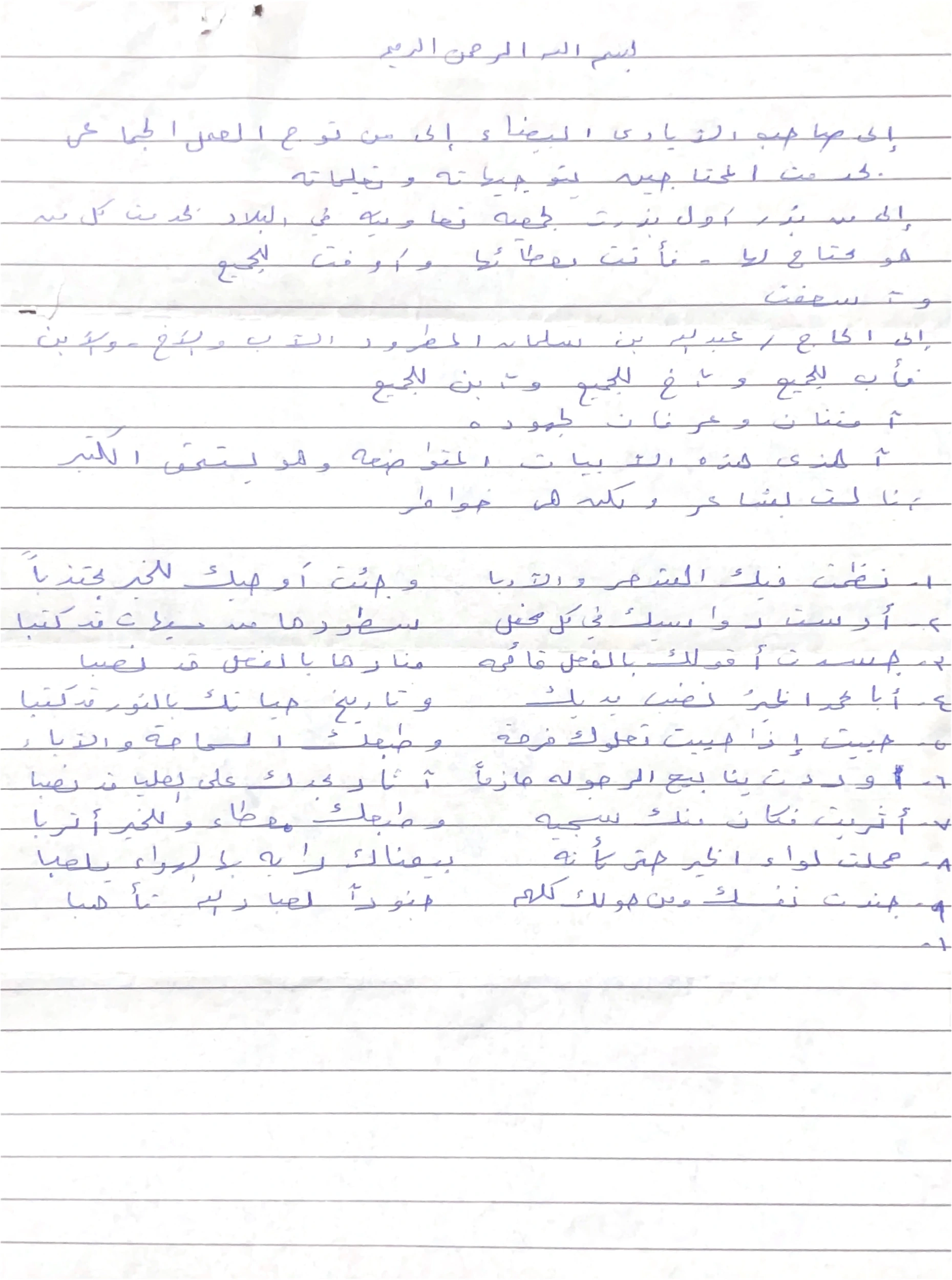 إلى الحاج عبد الله بن سلمان المطرود الزب والأخ و الأبن فأب للجميع و أخ للجميع و أبن للجميع
