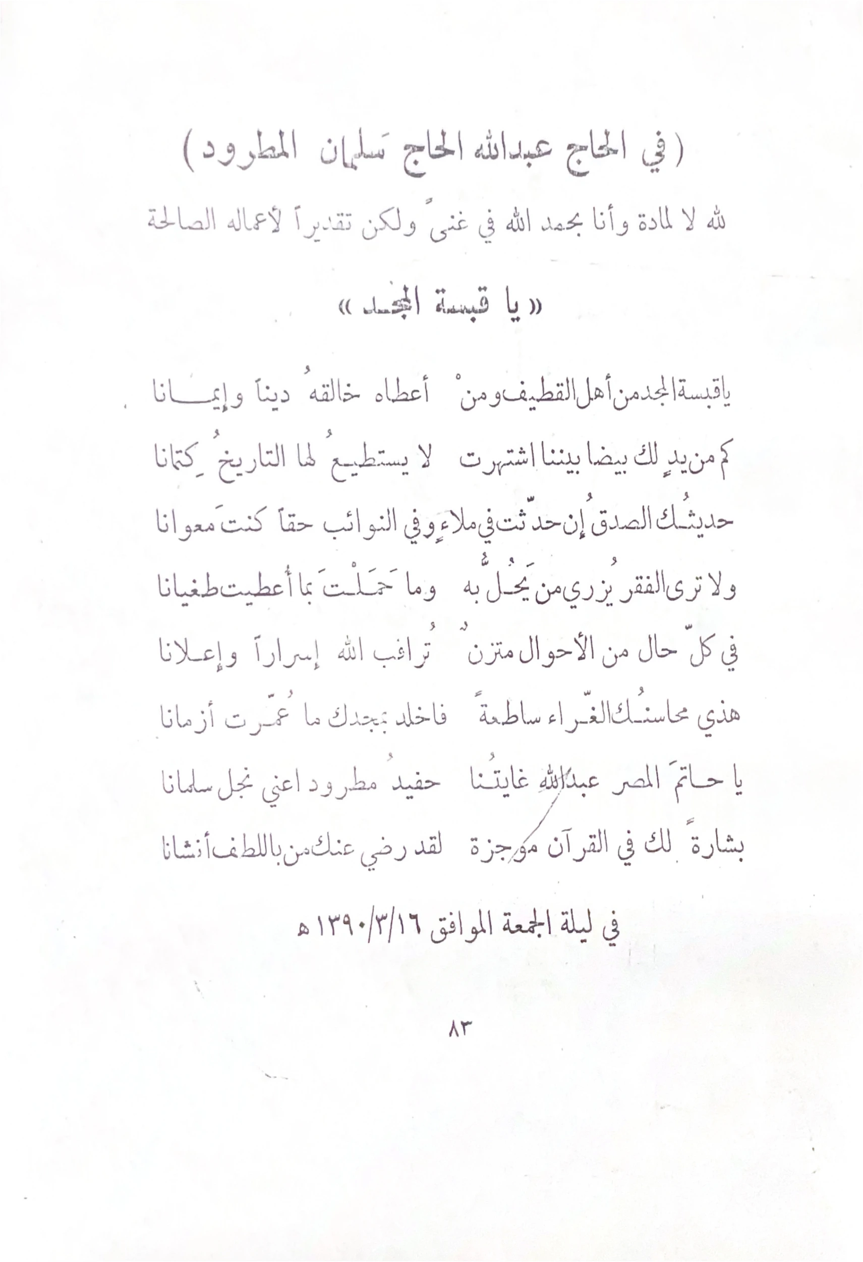 يقول الشاعر الحاج / علي بن محمد بن أحمد آل زاهر من العوامية إحدى قرى